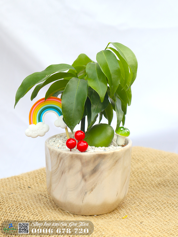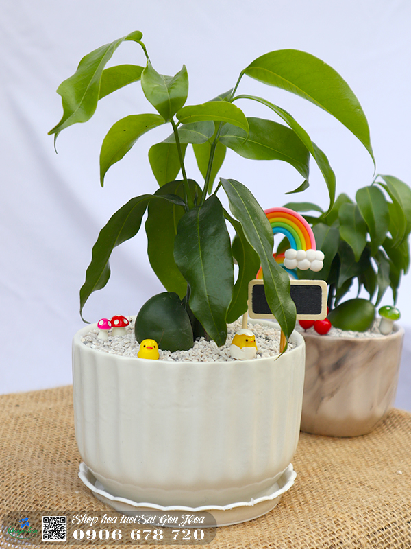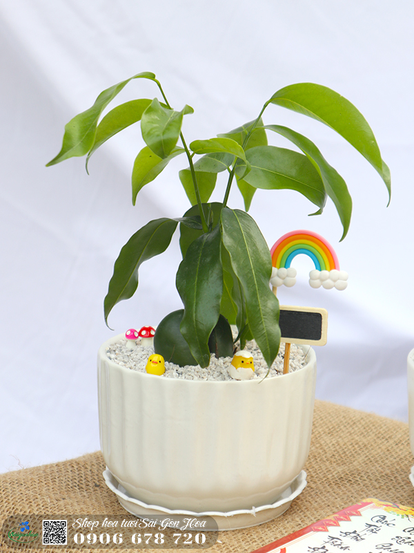 Cây đậu thần kỳ được trồng vào chậu sứ thêm các phụ kiện trang trí tạo nên một chậu cây không những vô cùng đẹp mắt mà còn mang lại nhiều ý nghĩa phong thủy tích cực,…