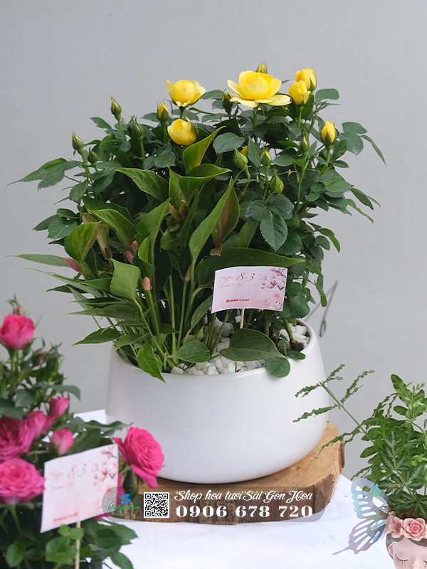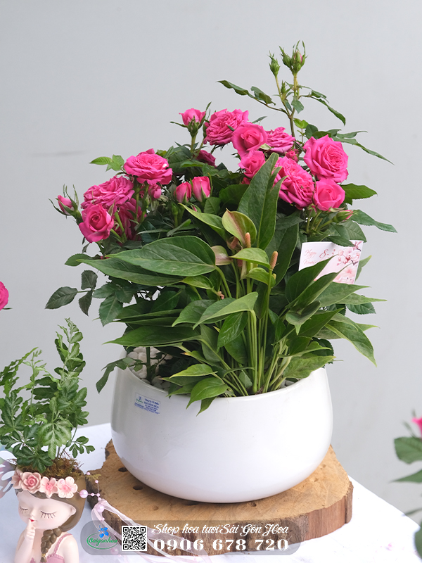 *** Liên hệ mua chậu hoa hồng mix hồng môn quà tặng